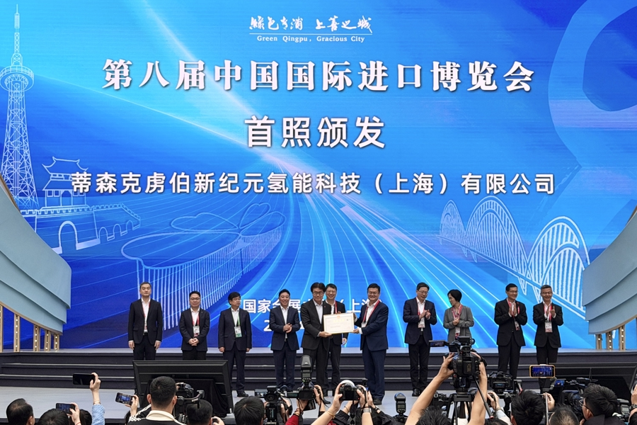 本届进博会“首照”“首证”同样由青浦颁发,标志着两家企业正式落户青浦。获颁首张营业执照的参展商蒂森克虏伯新纪元氢能科技(上海)有限公司是世界五百强企业蒂森克虏伯集团的全新成员,核心业务涵盖电解工艺研发与化工设备的设计、制造、运营全流程。在此基础上,公司还同步开展环保水处理、化工产品(如苛性钠、氯制品)的生产销售以及知识产权业务,构建了以氢能技术为引领的多元化业务体系;获颁首张食品经营许可证的唐艺甄选(上海)食品科技有限公司是一家以营养科学、生物技术、数字健康为核心驱动力的创新型科技企业,致力于为追求高品质生活的消费者提供科学、有效且美味的安全食品。