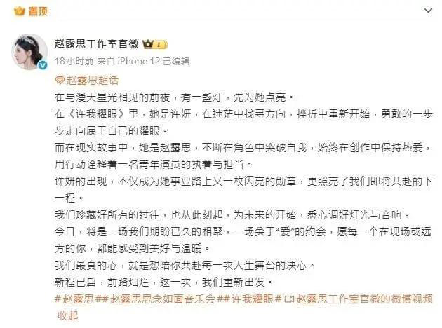 与此同时,赵露思工作室也发布了一篇长文,里面写道:“新程已启,前路灿烂,这一次,我们重新出发。”这句话也预示着,赵露思的事业将会有一个新的开始,有媒体发现,工作室简介已经删除了原有标识,这是赵露思原来的经纪公司,取而代之全新的联系方式。