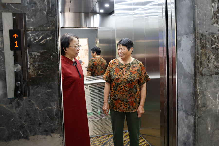 居民乘坐新更换的电梯