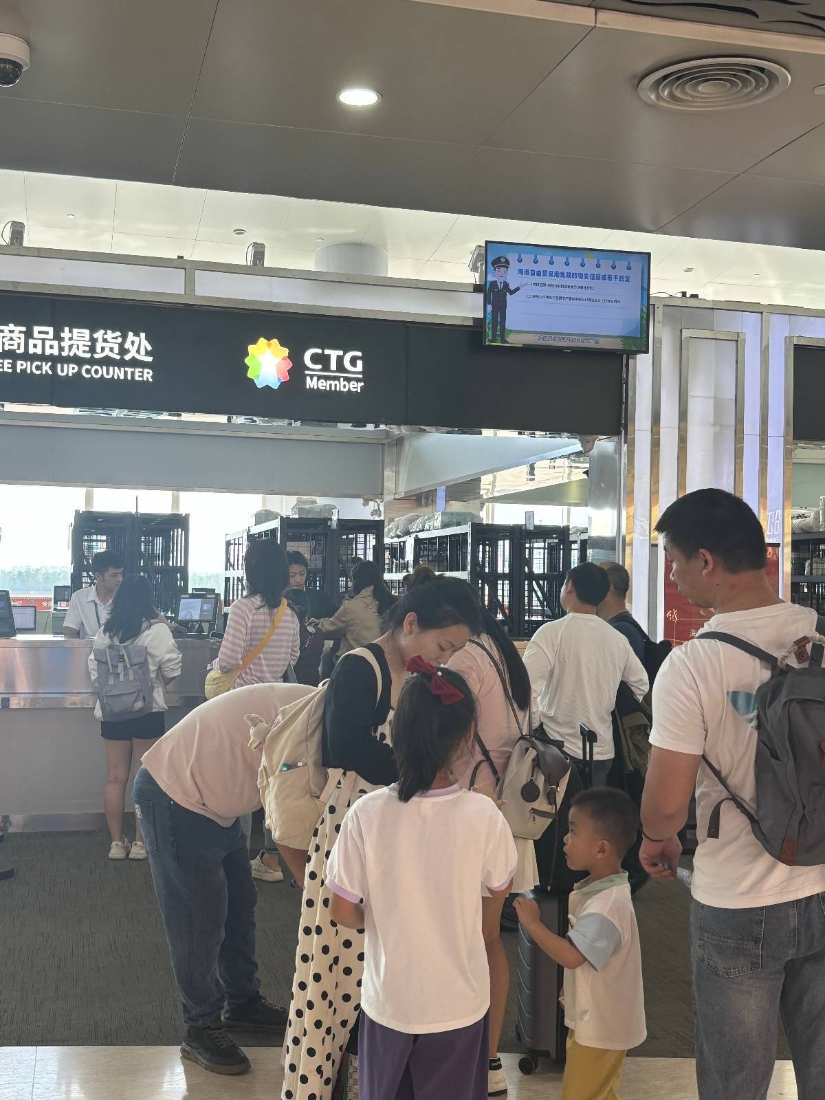 美兰机场商品提货区,顾客在排队提货。图/九派新闻 龚凌蔚